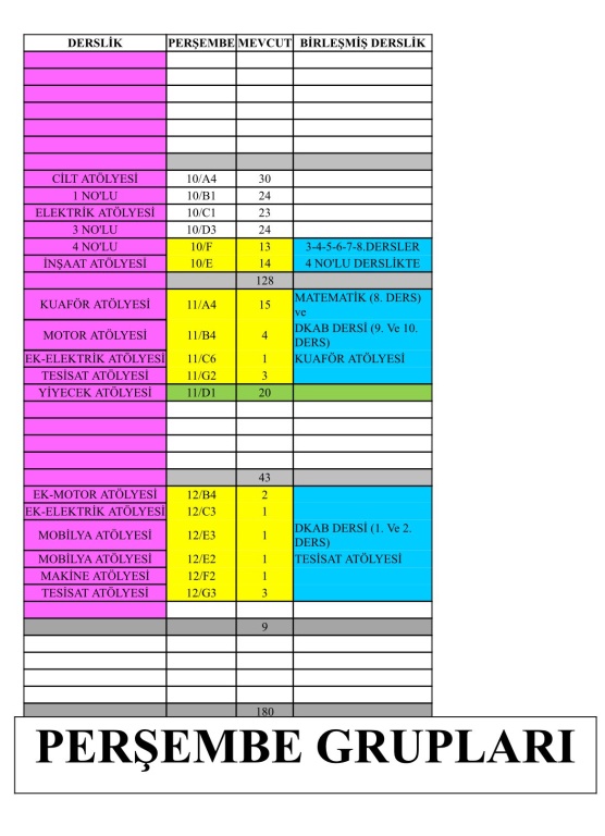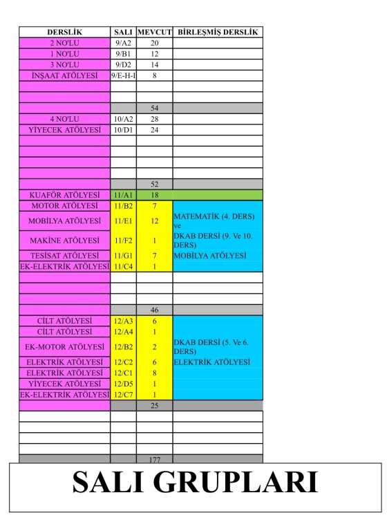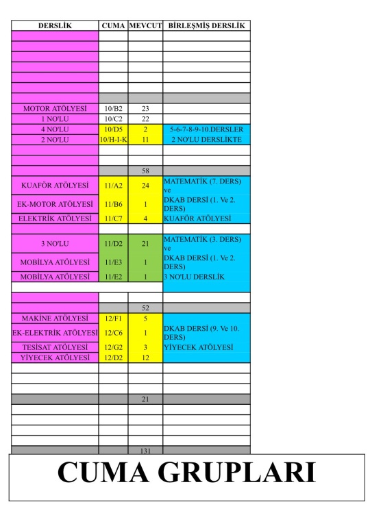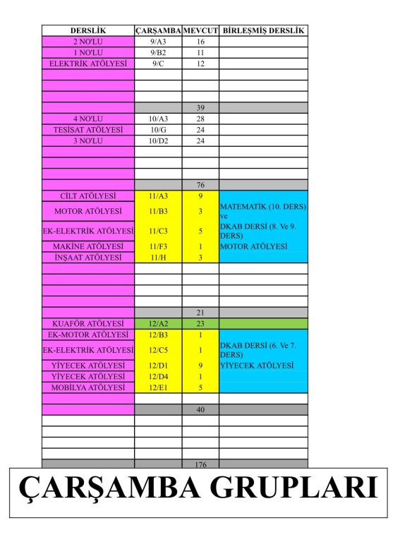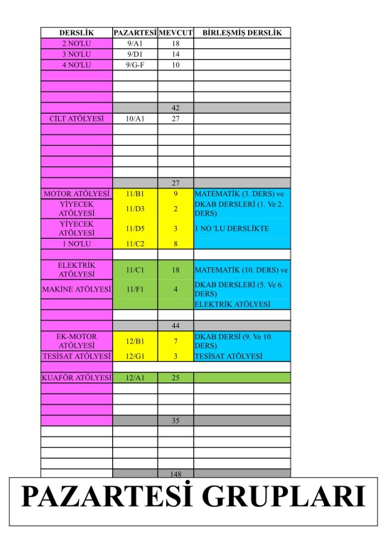 Şubelerin haftanın hangi günü okula geleceği ve hangi derslikte ders göreceği görsellerde mevcuttur.